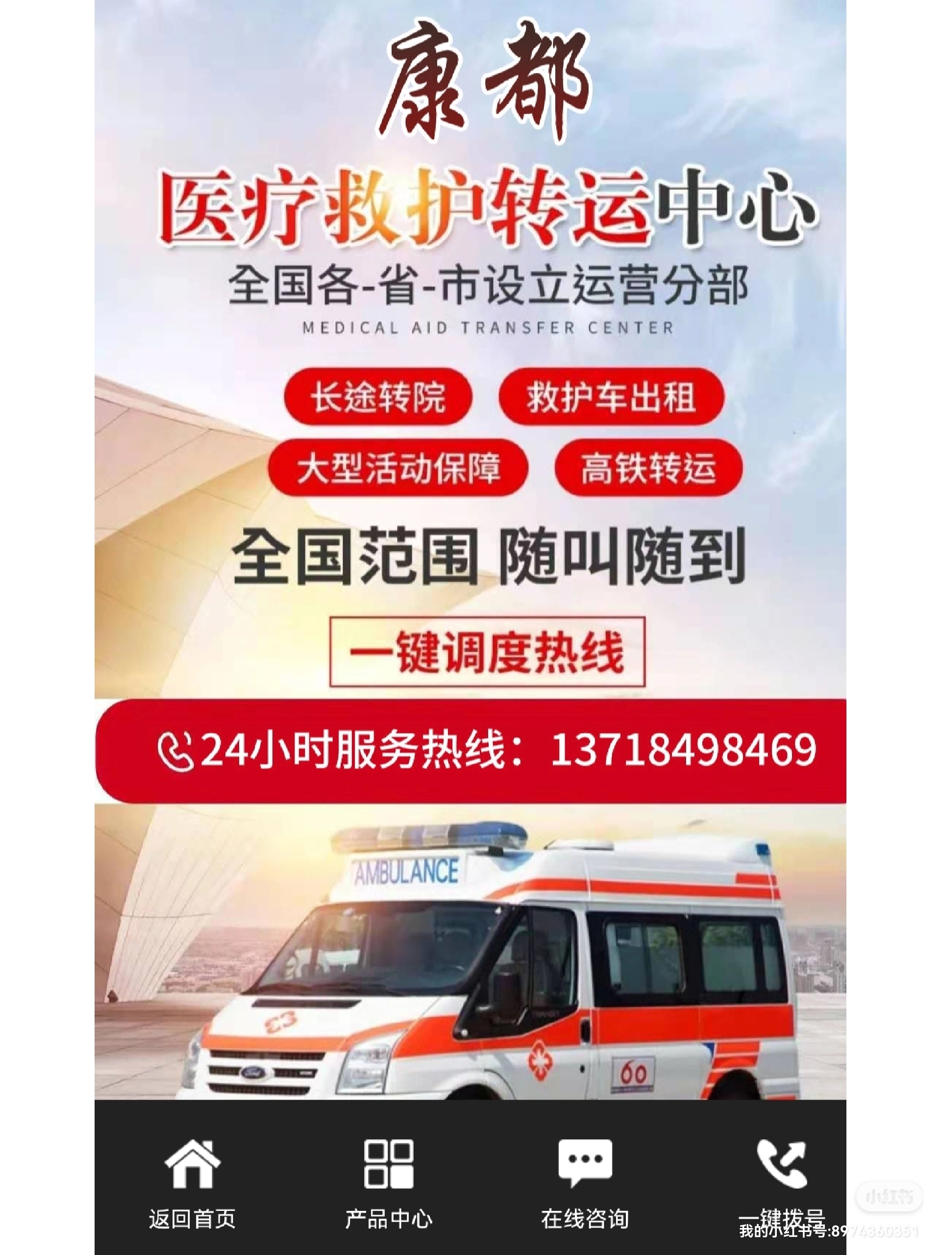 青川县120救护车长途转运告诉您救护车是一种在时间前提下为病情严重的伤者提供医疗保障的汽车,可以帮助那些缺乏运输或危急从现场转移的病人。特殊类型的救护机构,如医院机场,在紧急情况下提供旅行或度假,远离医院。养老院或护理院的老年人在提供长期护理时经常使用救护车。救护车的应用:一、救护车专车,专人负责,出车人员穿工作服。二、救护车上的医疗器械每次接送任务完成后,应进行检查、补充。三、保持救护车清洁,每次